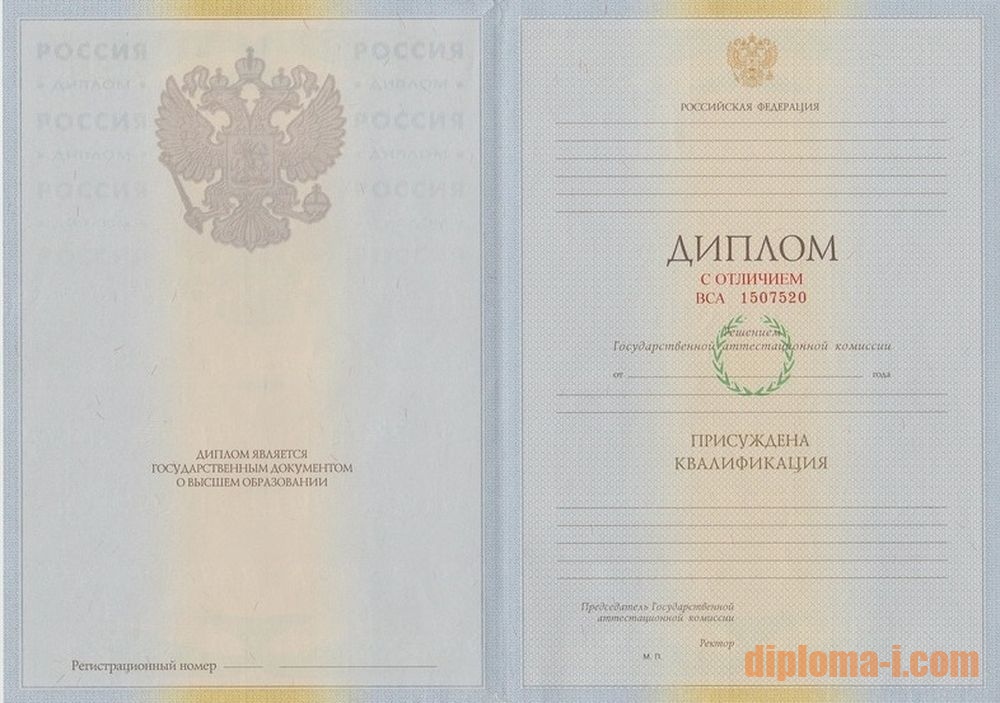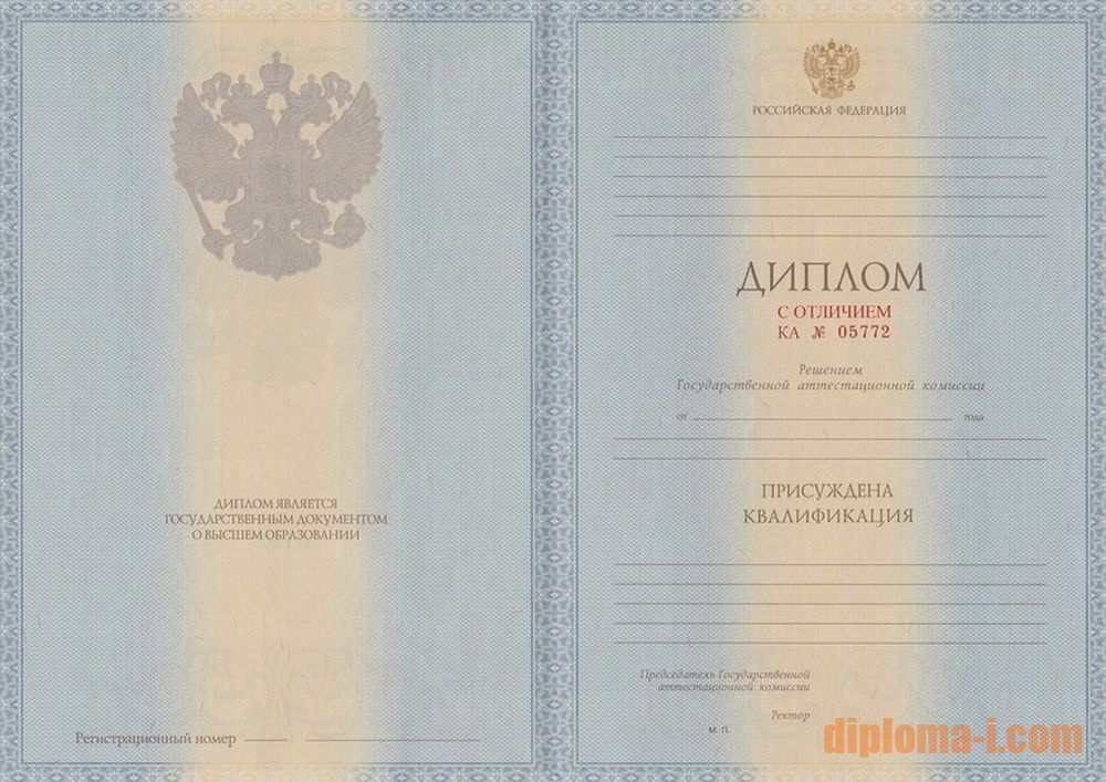 При трудоустройстве такой документ будет являться приоритетным среди прочих соискателей и поможет его обладателю быстрее получить желаемое вакантное место. Естественно, с человека имеющего подобный диплом, спрос будет намного больше, чем с обычных работников, но такое внимание заставит лучше относиться к порученной работе и в итоге даст свои положительные результаты. Хорошо справляющийся со своими обязанностями работник будет наверняка замечен руководством, в дальнейшем он может рассчитывать на получение более высокой должности или повышения по службе. Наша компания предлагает всем желающим купить диплом специалиста с отличием по приемлемой и доступной цене. Вся наша полиграфическая продукция безупречного качества, так как изготавливается на официальных бланках ГОЗНАК. Приложения заполняются в соответствии с правилами и стандартами, установленными для оформления образовательных документов студентам, окончившим высшие учебные заведения. При составлении заявки, можно указать любую необходимую информацию, которая будет внесена при выполнении заказа. Печати и подписи на документах будут соответствовать подписям и печатям указанного заказчиком образовательного заведения.